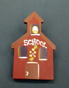Schoolhouse Pin The schoolhouse pin is barn red with Navy windows and a yellow bell. The pin measures 2 ¾" tall by 2" wide. Cost $5.00 plus shipping